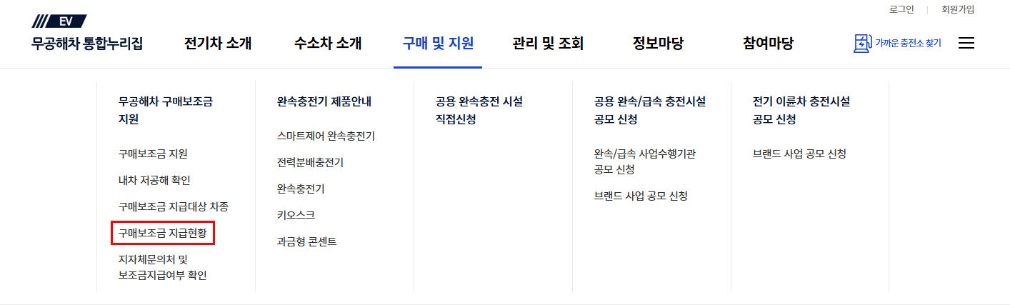 구매 및 지원 > 구매보조금 지급대상 차종에 들어가세요